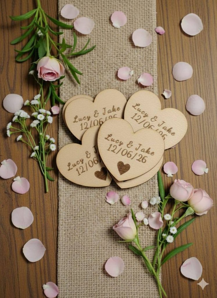 This live engraving service has also become a standout feature at wedding receptions. Rather than traditional favours that are often left behind on tables, couples can offer guests personalised keepsakes engraved live during the celebration. Names, dates, short messages, or even table numbers can be etched onto wooden or slate items while guests watch. It becomes entertainment, a talking point, and a memorable part of the day all at once. Guests leave not only with a beautiful favour, but with a meaningful memento created before their eyes, adding a truly unique and interactive touch to the wedding experience.