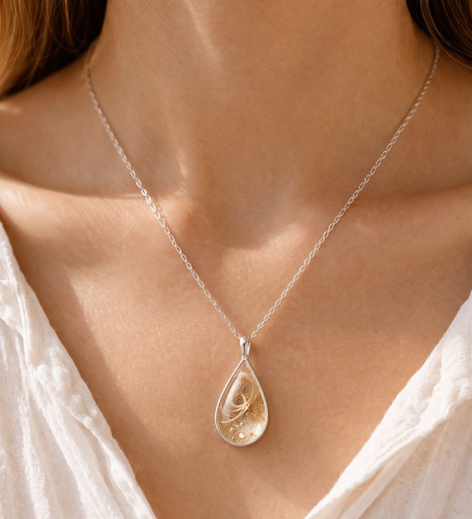 And then there is the level of customisation. Customers are not just choosing a design, they are creating something that holds meaning. Take the custom resin necklaces, for example. These can include ashes, hair, dried flowers, or other small personal items. It is not just jewellery. It is a way to carry a memory.