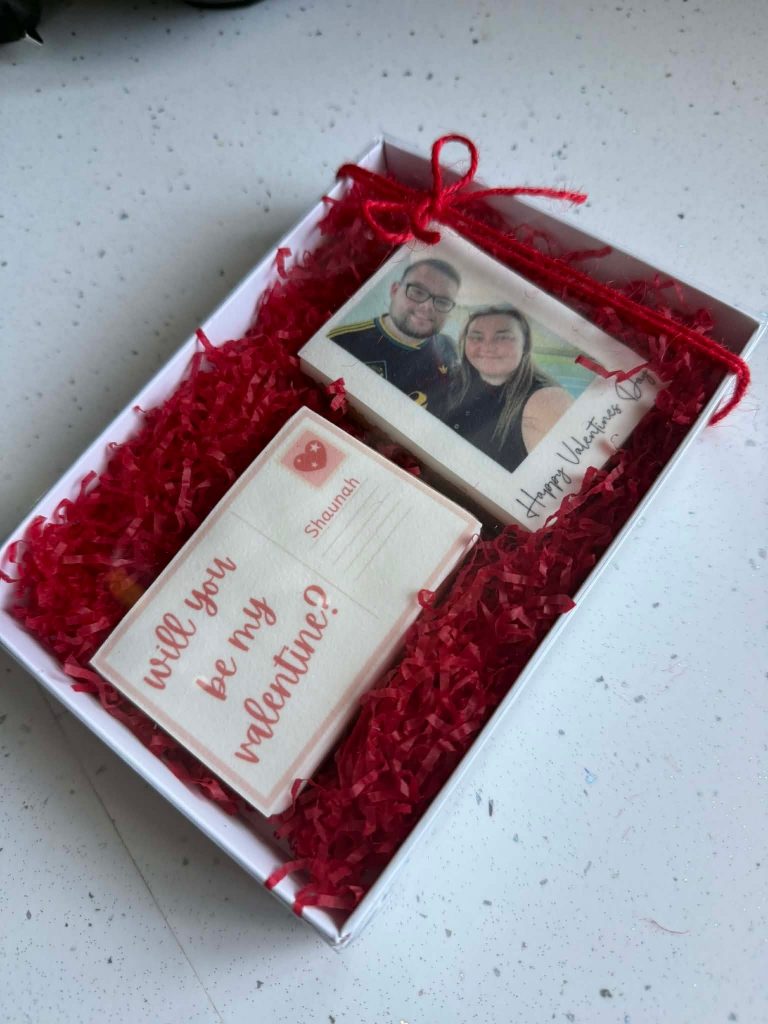 Whether it is an engagement, wedding favour, Valentine’s Day surprise, Mother’s Day treat, Father’s Day gift or even a bridesmaid proposal, the idea stays the same. It is your photo, printed onto a fully edible biscuit. That simple detail makes all the difference.